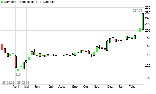 Mit dem Anstieg auf 239,60 EUR hat die Keysight Technologies-Aktie (ISIN US49338L1035) am 24.02.2026 ein neues All-Time-High erreicht und damit den Kurs vom 20.02.2026 eingestellt.