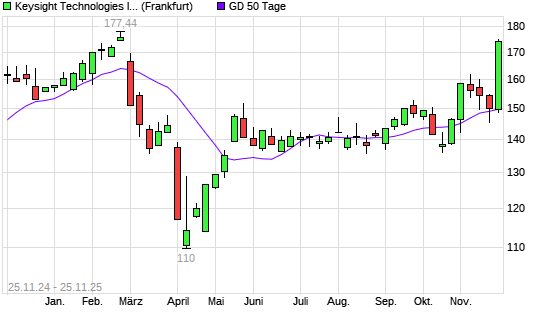 Mit dem Anstieg auf 149,66 EUR hat die Keysight Technologies-Aktie am 24.11.2025 die 50-Tage-Linie nach oben gekreuzt.
