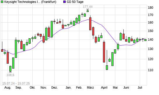 Mit dem Rücksetzer auf 138,70 EUR hat die Keysight Technologies-Aktie am 14.07.2025 die 50-Tage-Linie nach unten gekreuzt.