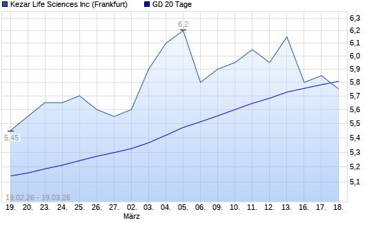 Mit dem Rücksetzer auf 5,75 EUR hat die Kezar Life Sciences-Aktie am 18.03.2026 die 20-Tage-Linie nach unten gekreuzt.