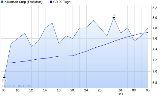 Mit dem Anstieg auf 7,80 EUR hat die Kikkoman-Aktie am 05.12.2025 die 20-Tage-Linie nach oben gekreuzt.