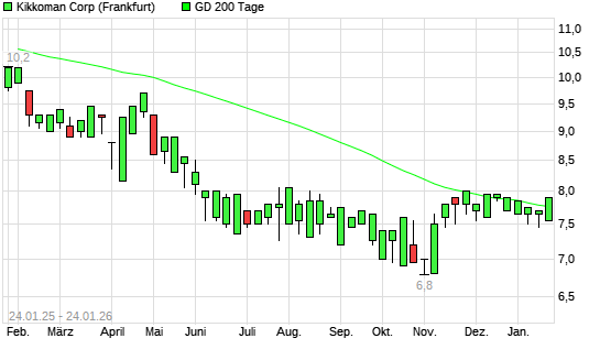 Mit dem Anstieg auf 7,90 EUR hat die Kikkoman-Aktie am 23.01.2026 die 200-Tage-Linie nach oben gekreuzt.