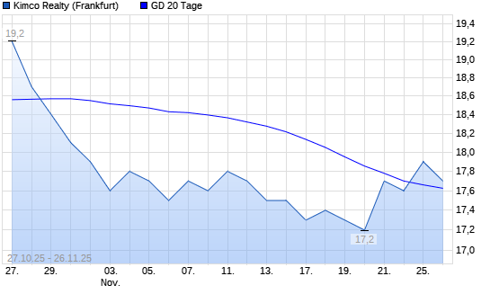 Mit dem Anstieg auf 17,90 EUR hat die Kimco Realty-Aktie am 25.11.2025 die 20-Tage-Linie nach oben gekreuzt.