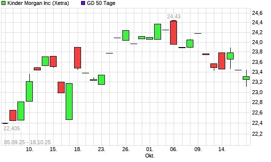 Mit dem Anstieg auf 23,40 EUR hat die Kinder Morgan-Aktie am 17.10.2025 die 50-Tage-Linie nach oben gekreuzt.