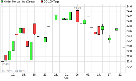 Mit dem Rücksetzer auf 22,62 EUR hat die Kinder Morgan-Aktie am 23.10.2025 die 100-Tage-Linie nach unten gekreuzt.