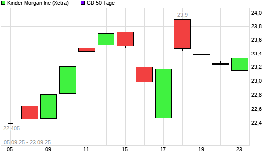 Mit dem Rücksetzer auf 23,04 EUR hat die Kinder Morgan-Aktie am 22.09.2025 die 50-Tage-Linie nach unten gekreuzt.