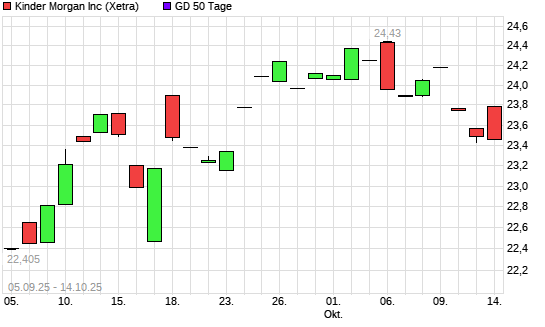 Mit dem Rücksetzer auf 23,21 EUR hat die Kinder Morgan-Aktie am 13.10.2025 die 50-Tage-Linie nach unten gekreuzt.
