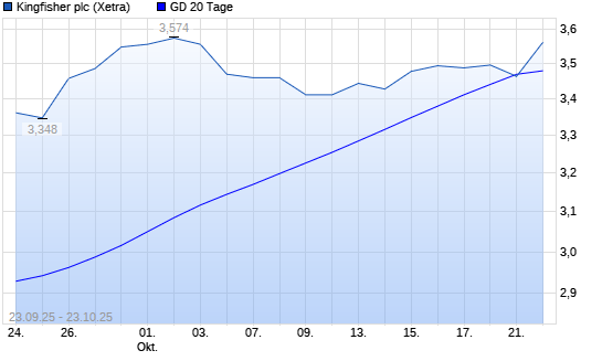 Mit dem Anstieg auf 3,52 EUR hat die Kingfisher-Aktie am 22.10.2025 die 20-Tage-Linie nach oben gekreuzt.