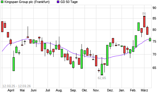 Mit dem Anstieg auf 76,90 EUR hat die Kingspan Group-Aktie am 11.03.2026 die 50-Tage-Linie nach oben gekreuzt.