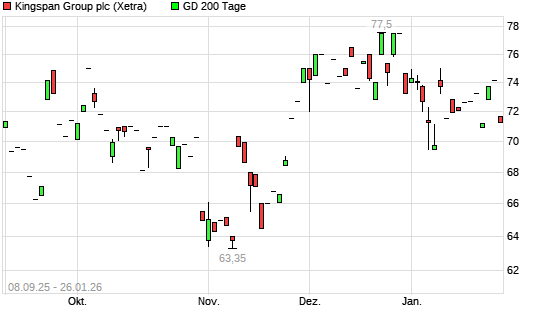 Mit dem Rücksetzer auf 71,05 EUR hat die Kingspan Group-Aktie am 26.01.2026 die 200-Tage-Linie nach unten gekreuzt.