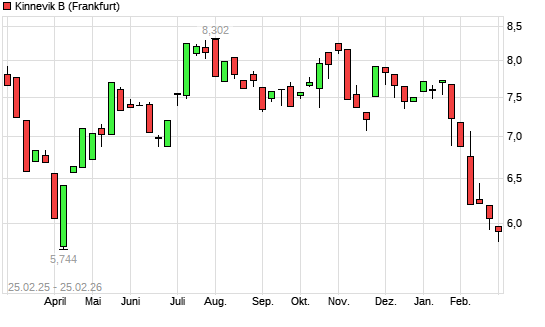 Mit dem Rücksetzer auf 5,82 EUR hat die Kinnevik B-Aktie (ISIN SE0022060521) am 24.02.2026 ein neues 6-Monats-Tief erreicht und damit den Kurs vom 19.02.2026 eingestellt.