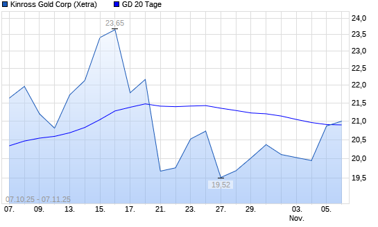 Mit dem Anstieg auf 21,05 EUR hat die Kinross Gold-Aktie am 06.11.2025 die 20-Tage-Linie nach oben gekreuzt.