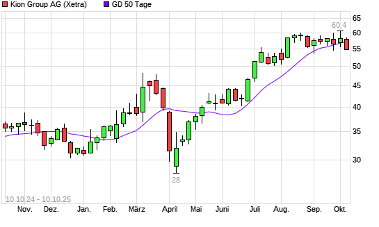 Mit dem Anstieg auf 57,40 EUR hat die Kion Group-Aktie am 09.10.2025 die 50-Tage-Linie nach oben gekreuzt.
