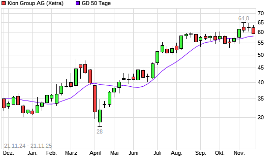 Mit dem Rücksetzer auf 58,00 EUR hat die Kion Group-Aktie am 20.11.2025 die 50-Tage-Linie nach unten gekreuzt.