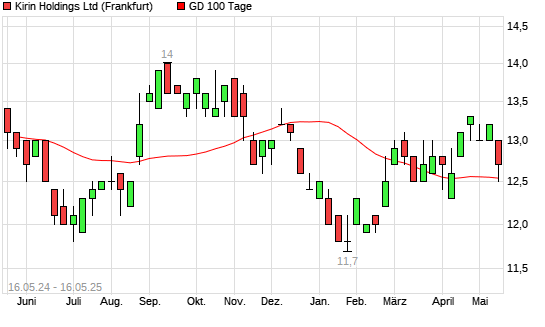 Mit dem Anstieg auf 12,60 EUR hat die Kirin Holdings-Aktie am 15.05.2025 die 100-Tage-Linie nach oben gekreuzt.