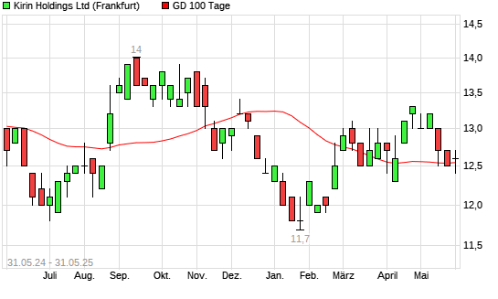 Mit dem Anstieg auf 12,60 EUR hat die Kirin Holdings-Aktie am 30.05.2025 die 100-Tage-Linie nach oben gekreuzt.