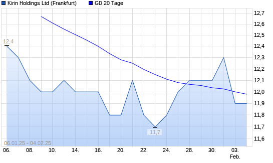Mit dem Rücksetzer auf 11,90 EUR hat die Kirin Holdings-Aktie am 03.02.2025 die 20-Tage-Linie nach unten gekreuzt.