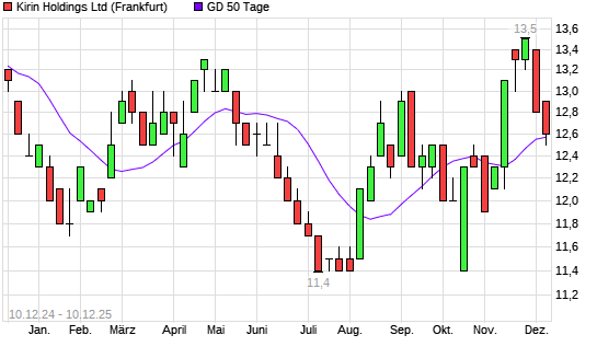 Mit dem Rücksetzer auf 12,50 EUR hat die Kirin Holdings-Aktie am 09.12.2025 die 50-Tage-Linie nach unten gekreuzt.