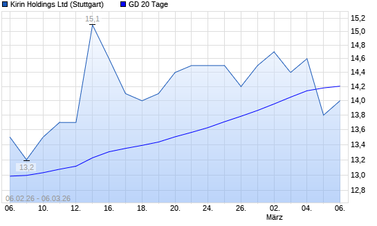 Mit dem Rücksetzer auf 13,90 EUR hat die Kirin Holdings-Aktie am 05.03.2026 die 20-Tage-Linie nach unten gekreuzt.Die Kirin Holdings-Aktie befindet sich seit dem 12.11.2025 ...weiterlesen