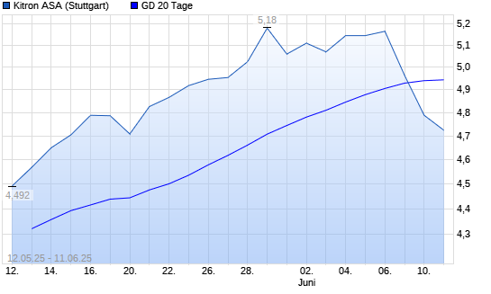 Mit dem Rücksetzer auf 4,87 EUR hat die Kitron ASA-Aktie am 10.06.2025 die 20-Tage-Linie nach unten gekreuzt.