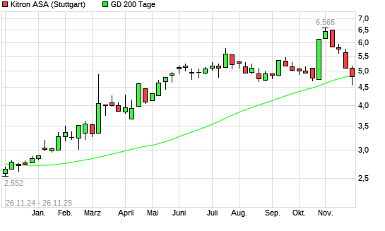 Mit dem Rücksetzer auf 4,77 EUR hat die Kitron ASA-Aktie am 25.11.2025 die 200-Tage-Linie nach unten gekreuzt.