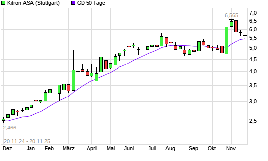 Mit dem Rücksetzer auf 5,49 EUR hat die Kitron ASA-Aktie am 19.11.2025 die 50-Tage-Linie nach unten gekreuzt.