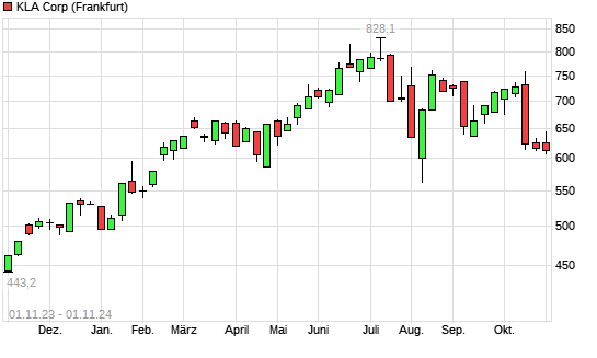 Mit dem Rücksetzer auf 608,40 EUR hat die Kla-Tencor-Aktie (ISIN US4824801009) am 31.10.2024 ein neues 6-Monats-Tief erreicht und damit den Kurs vom 25.10.2024 eingestellt.