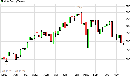 Mit dem Rücksetzer auf 574,40 EUR hat die Kla-Tencor-Aktie (ISIN US4824801009) am 19.11.2024 ein neues 6-Monats-Tief erreicht und damit den Kurs vom 18.11.2024 eingestellt.