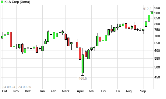 Mit dem Anstieg auf 908,00 EUR hat die Kla-Tencor-Aktie (ISIN US4824801009) am 23.09.2025 ein neues All-Time-High erreicht und damit den Kurs vom 19.09.2025 eingestellt.