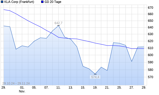 Mit dem Anstieg auf 611,50 EUR hat die Kla-Tencor-Aktie am 28.11.2024 die 20-Tage-Linie nach oben gekreuzt.