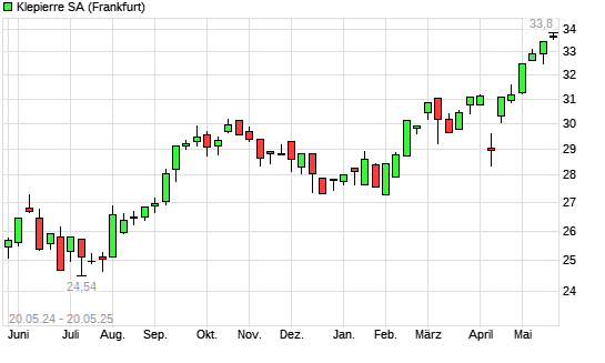 Mit dem Anstieg auf 33,64 EUR hat die Klepierre-Aktie (ISIN FR0000121964) am 19.05.2025 ein neues 5-Jahres-Hoch erreicht und damit den Kurs vom 16.05.2025 eingestellt.