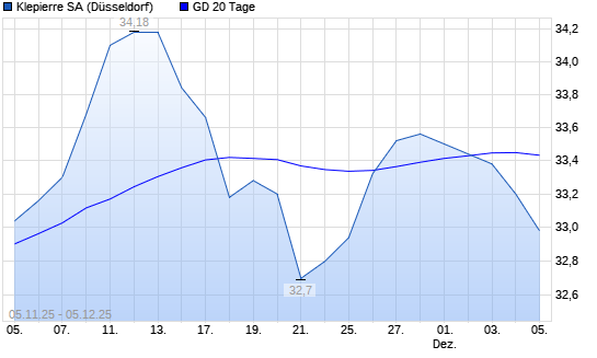 Mit dem Anstieg auf 33,50 EUR hat die Klepierre-Aktie am 04.12.2025 die 20-Tage-Linie nach oben gekreuzt.