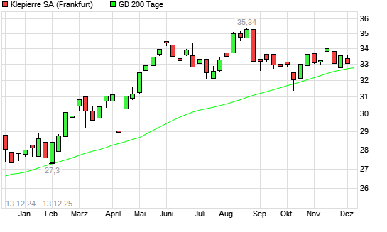 Mit dem Anstieg auf 32,82 EUR hat die Klepierre-Aktie am 12.12.2025 die 200-Tage-Linie nach oben gekreuzt.