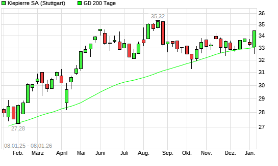 Mit dem Anstieg auf 33,18 EUR hat die Klepierre-Aktie am 07.01.2026 die 200-Tage-Linie nach oben gekreuzt.