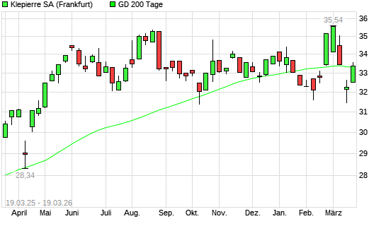 Mit dem Anstieg auf 33,54 EUR hat die Klepierre-Aktie am 18.03.2026 die 200-Tage-Linie nach oben gekreuzt.