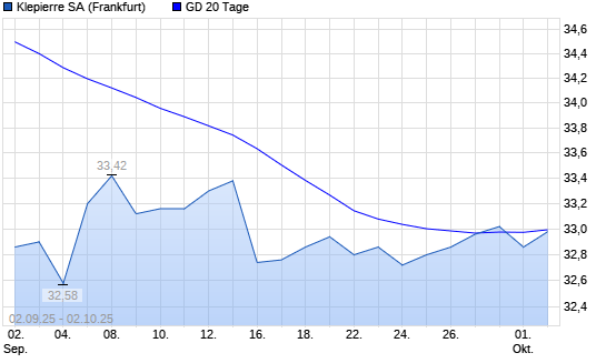 Mit dem Rücksetzer auf 32,86 EUR hat die Klepierre-Aktie am 01.10.2025 die 20-Tage-Linie nach unten gekreuzt.