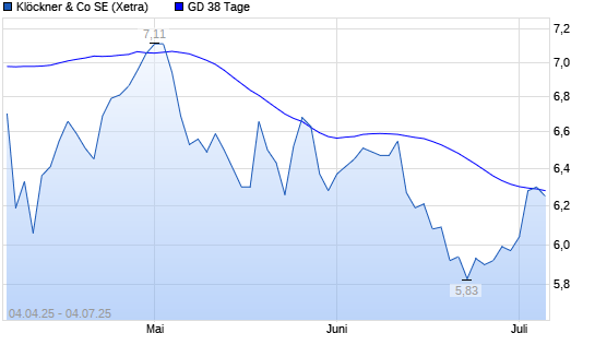 Mit dem Anstieg auf 6,37 EUR hat die Klöckner-Aktie am 03.07.2025 die 38-Tage-Linie nach oben gekreuzt.