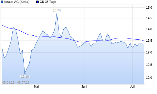 Mit dem Anstieg auf 13,46 EUR hat die Knaus Tabbert-Aktie am 07.07.2025 die 38-Tage-Linie nach oben gekreuzt.