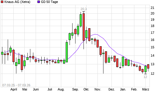 Mit dem Anstieg auf 12,80 EUR hat die Knaus Tabbert-Aktie am 06.03.2026 die 50-Tage-Linie nach oben gekreuzt.