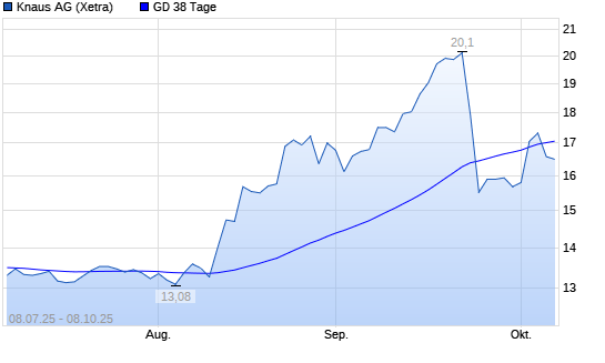 Mit dem Rücksetzer auf 16,50 EUR hat die Knaus Tabbert-Aktie am 07.10.2025 die 38-Tage-Linie nach unten gekreuzt.