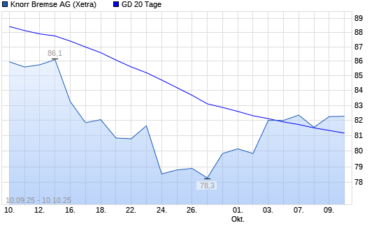 Mit dem Anstieg auf 81,65 EUR hat die Knorr-Bremse-Aktie am 09.10.2025 die 20-Tage-Linie nach oben gekreuzt.