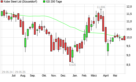 Mit dem Rücksetzer auf 9,97 EUR hat die Kobe Steel-Aktie am 28.05.2025 die 200-Tage-Linie nach unten gekreuzt.