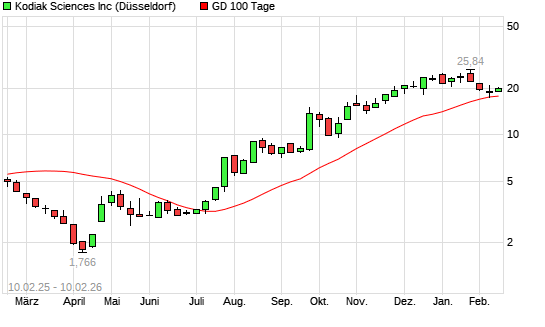Mit dem Anstieg auf 18,91 EUR hat die Kodiak Sciences-Aktie am 09.02.2026 die 100-Tage-Linie nach oben gekreuzt.