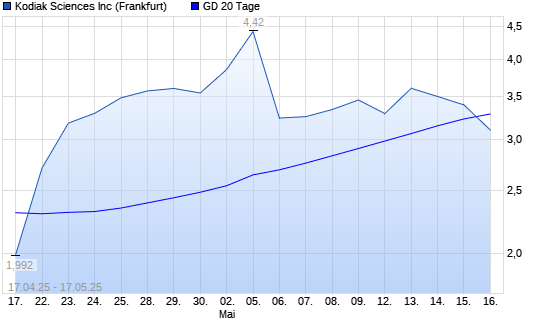 Mit dem Rücksetzer auf 3,01 EUR hat die Kodiak Sciences-Aktie am 16.05.2025 die 20-Tage-Linie nach unten gekreuzt.