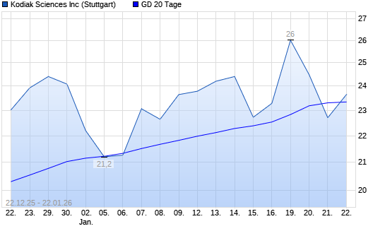 Mit dem Rücksetzer auf 23,02 EUR hat die Kodiak Sciences-Aktie am 21.01.2026 die 20-Tage-Linie nach unten gekreuzt.