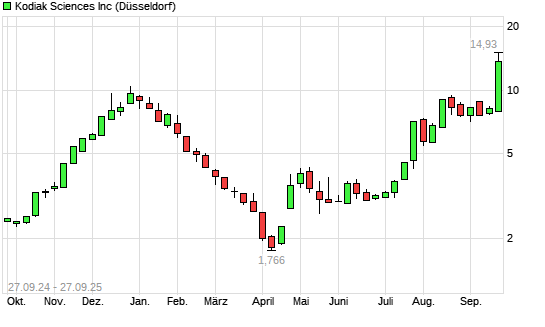 Mit dem Anstieg auf 13,40 EUR hat die Kodiak Sciences-Aktie (ISIN US50015M1099) am 26.09.2025 ein neues 3-Jahres-Hoch erreicht und damit den Kurs vom 25.09.2025 eingestellt.Die Kodiak Sciences-Aktie ...weiterlesen