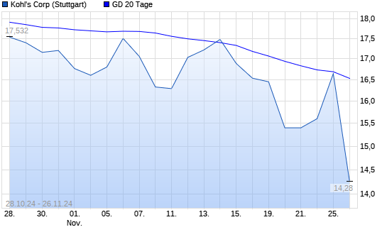Mit dem Anstieg auf 17,07 EUR hat die Kohl's-Aktie am 25.11.2024 die 20-Tage-Linie nach oben gekreuzt.