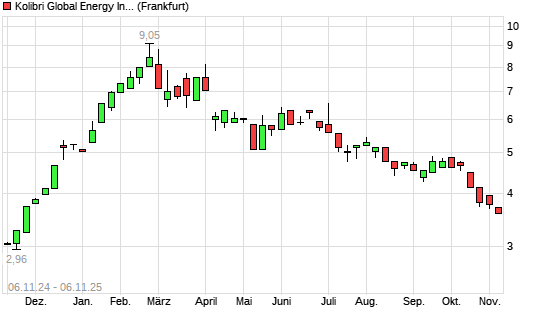 Mit dem Rücksetzer auf 3,58 EUR hat die Kolibri Global Energy-Aktie (ISIN CA50043K4063) am 05.11.2025 ein neues 6-Monats-Tief erreicht und damit den Kurs vom 04.11.2025 eingestellt.