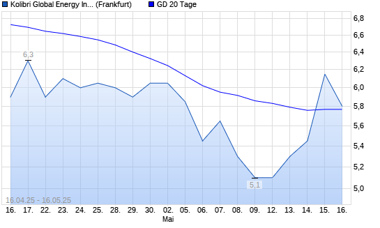 Mit dem Anstieg auf 6,15 EUR hat die Kolibri Global Energy-Aktie am 15.05.2025 die 20-Tage-Linie nach oben gekreuzt.