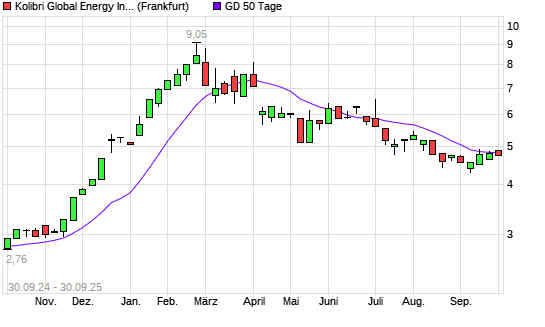 Mit dem Anstieg auf 4,88 EUR hat die Kolibri Global Energy-Aktie am 29.09.2025 die 50-Tage-Linie nach oben gekreuzt.